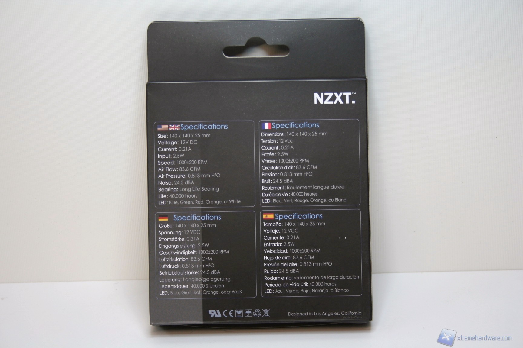 Per quanto concerne il modello NZXT, oltre alle pale trasparenti con quattro LED laterali di colore verde, è caratterizzato da un numero elevato di pale di ventilazione, le quali sono leggermente meno larghe della concorrenza, ed hanno anche una angolazione particolarmente marcata. E’ presente una leggera curvatura verso l’interno del motore e presenta anche un cavo molto lungo ed ottimamente sleevato. La silenziosità è elevata e le performance sono leggermente superiori alla media. Nel bundle viene incluso un adattatore 3PIN – MLX femmina e maschio, assieme alle quattro viti per il montaggio. E’ una dotazione nella media, ma dato il cavo molto lungo non servirà una prolunga.