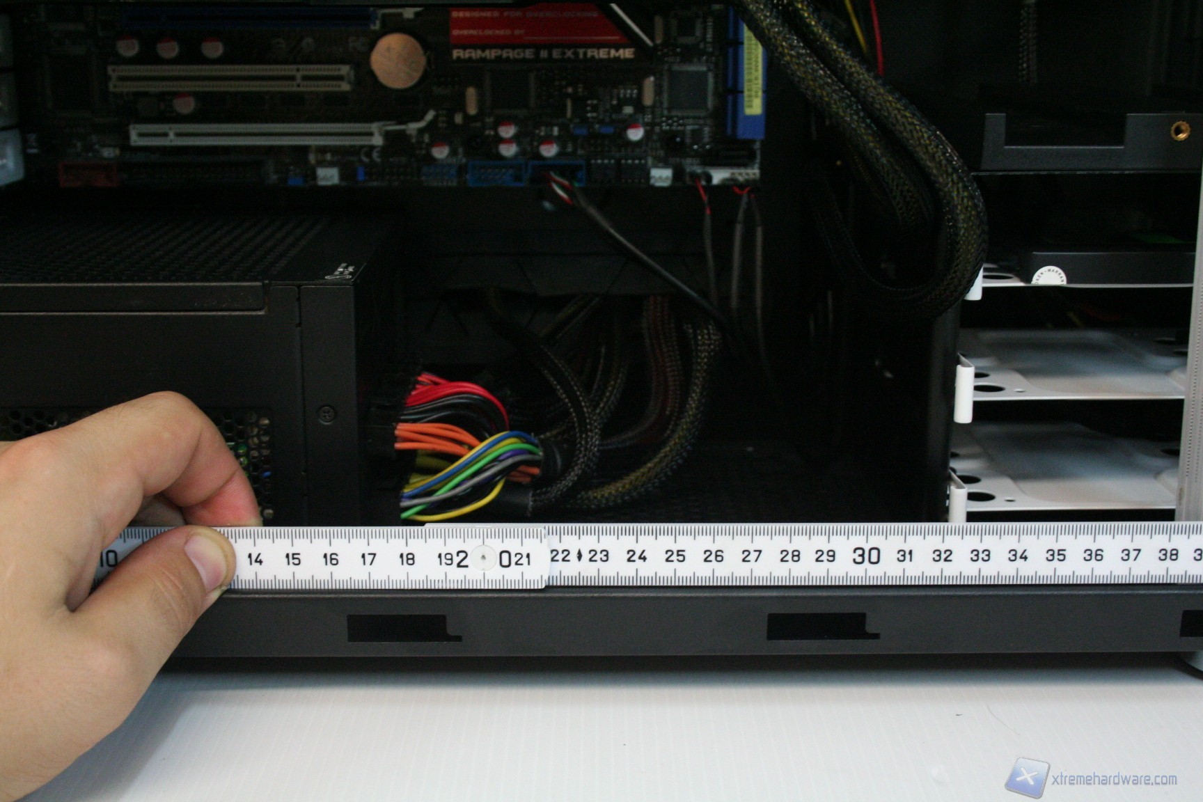 In questo paragrafo analizzeremo il montaggio di un sistema Intel con socket X58, all’interno del Fractal Design Define R4, assieme al conseguente cablaggio posteriore, ed anteriore. Anche per gli utenti poco esperti la procedura è molto facile: per prima cosa dovrete montare l’alimentatore alla base del cabinet, facendo attenzione a passare il connettore di alimentazione supplementare della scheda madre, da 4/8 pin, attraverso l’apertura laterale destra, quindi facendolo scomparire e passare dietro alla paratia, per permetterne il passaggio dal foro superiore sinistro. Fatto questo consigliamo l’installazione dei dischi rigidi all'interno del cage inferiore, utilizzando di viteria dedicata, direttamente nelle aperture predisposte con profili gommati antivibrazione. Fatto questo sarà necessario montare il lettore ottico, staccando la parte frontale facendo pressione verso l'esterno, partendo dalla base. In seguito, si passerà all’installazione della scheda madre. Se si possiede un dissipatore Intel, tramite il solito sistema push-pin, sarà possibile installarlo successivamente, altrimenti se volete potete già procedere ad installare il backplate del dissipatore della CPU, facendo attenzione a stendere un sottile velo di pasta termica alla base della CPU stessa e posizionando lateralmente il cabinet. Questa è la procedura classica, altrimenti potrete semplicemente montare la scheda madre e sfruttare l'apertura posteriore del cabinet. Dopo aver montato il dissipatore sulla scheda madre, sarà necessario montare la scheda video, le RAM ed infine procedere all’assemblaggio dei cavi di connessione del cabinet alla scheda madre. Per fare un lavoro pulito consigliamo l’utilizzo delle fascette restringenti fornite in bundle.