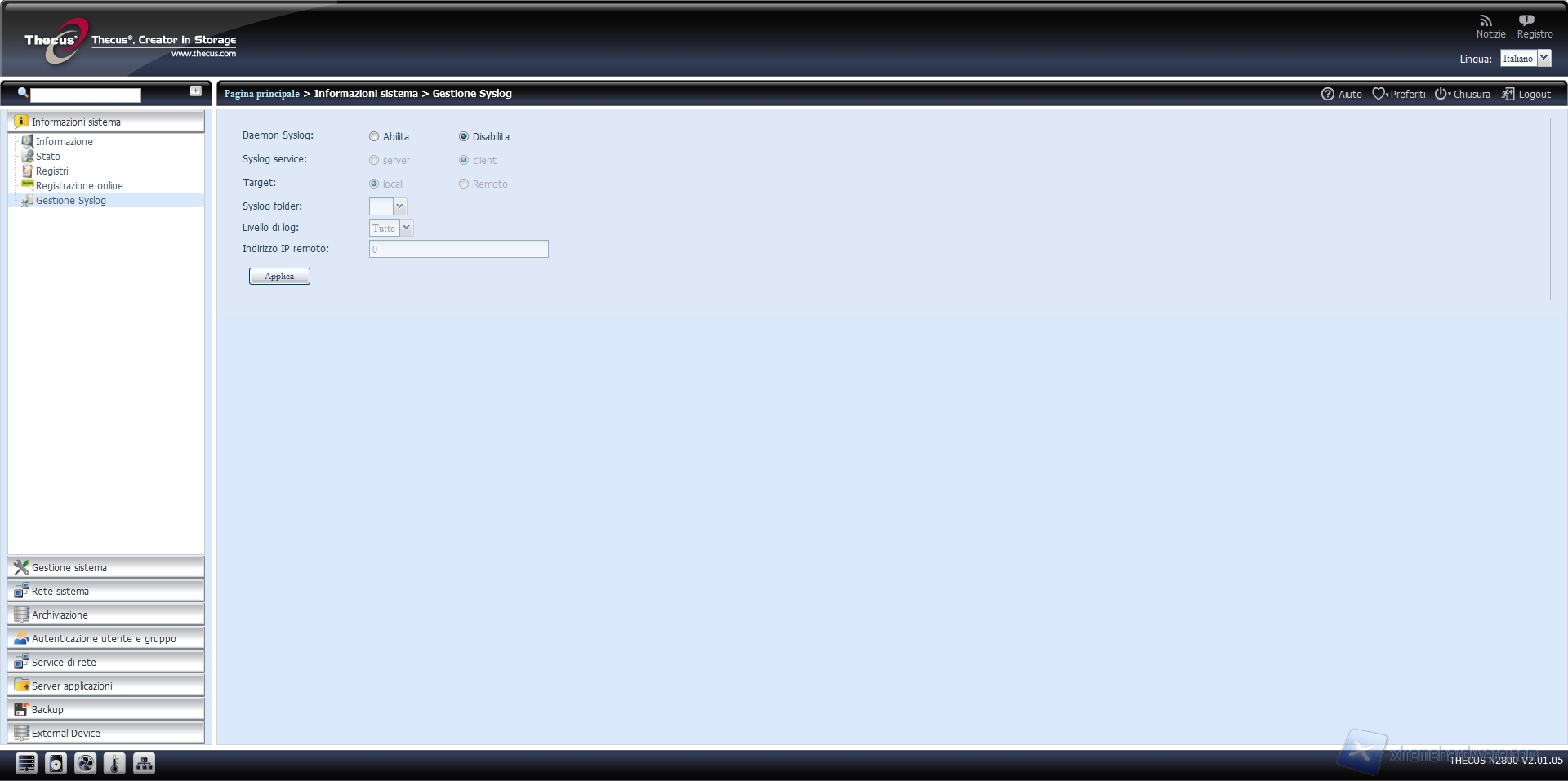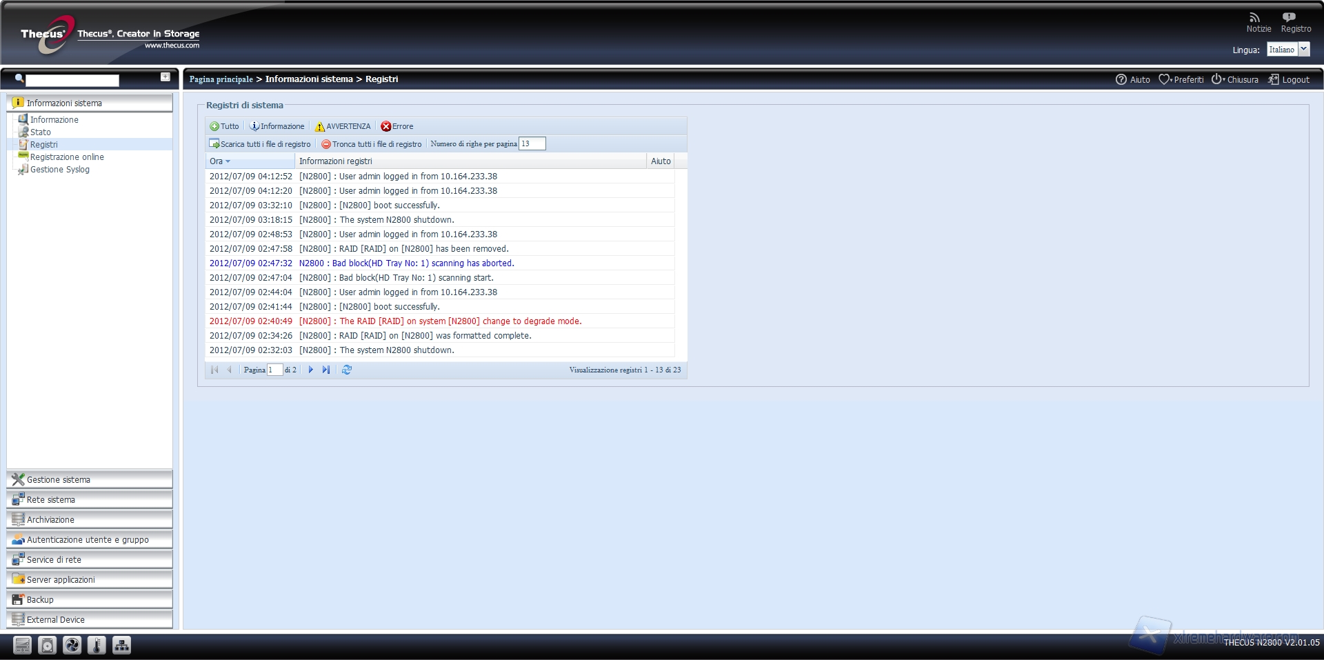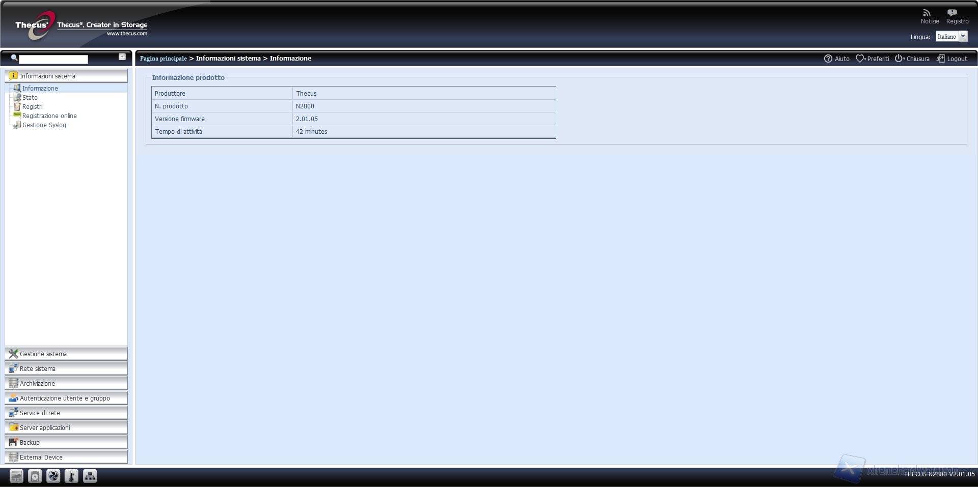 NAS Thecus N2800: what else? - Menu: informazioni di sistema