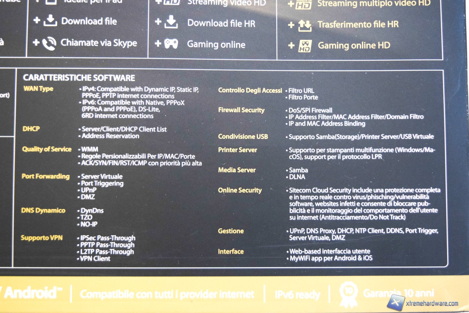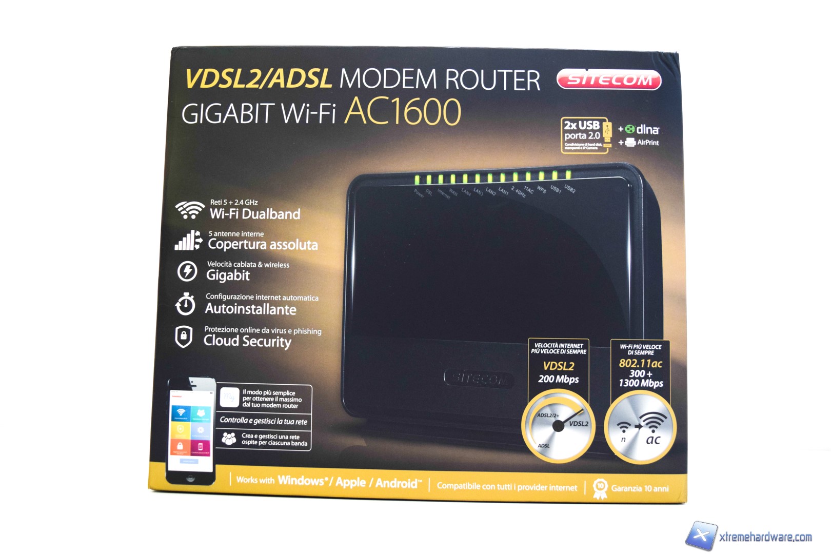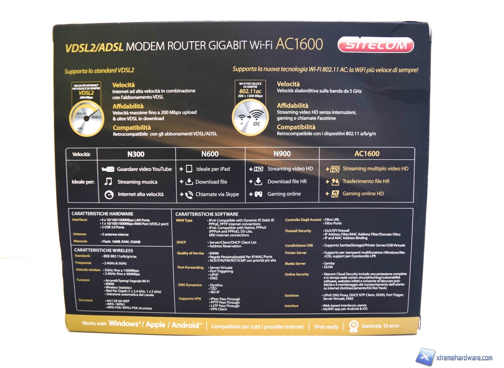 La confezione del modem è realizzata in cartone nero con inserti oro, molto eleganti.